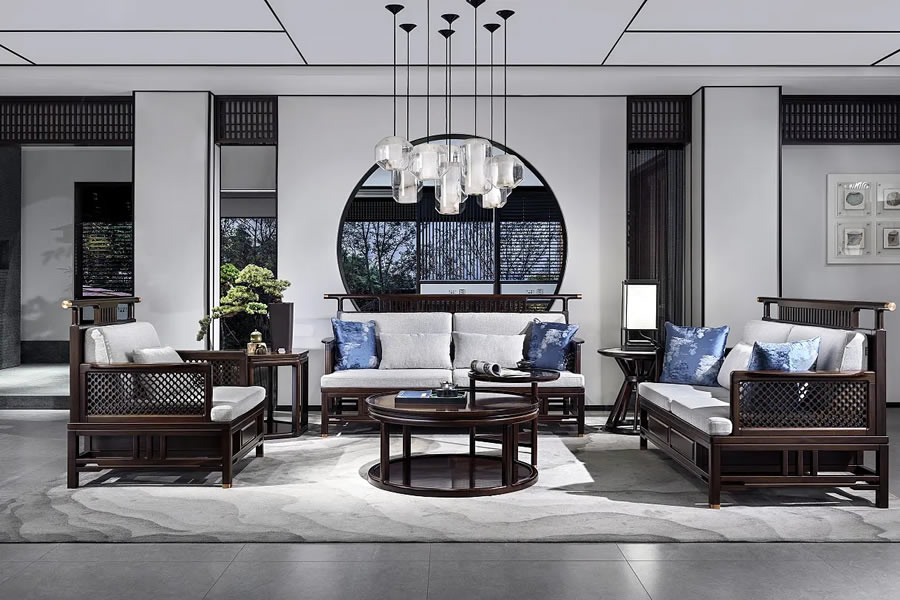 客廳家具:新中式客廳家具以簡約、大氣為主,注重實用性和舒適性。常見的有沙發、茶幾、電視柜...